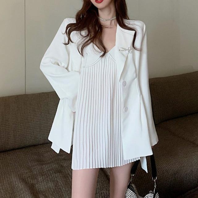 テーラードジャケット ワンピース レディース アウター 無地 白 長袖 スーツ風 Vネック ミニ丈 ノースリーブ Aライン セクシー おしゃれ の通販はau Pay マーケット 新勢